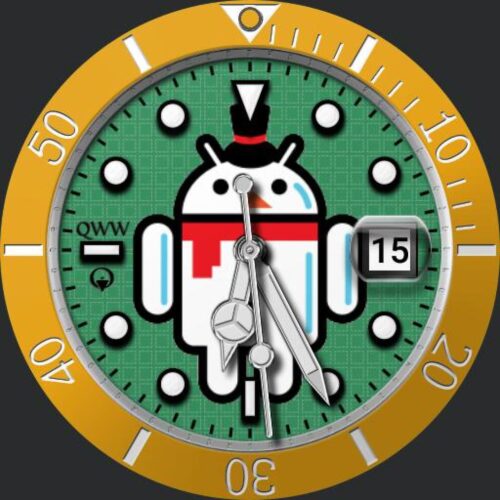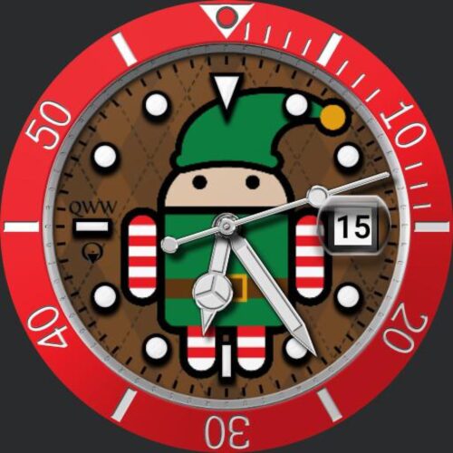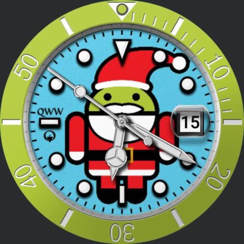It's an Android Christmas extravaganza! Quirk Watchworks is proud to present the Android Christmas GronDiver! Modeled on one of Sean Grondin's modular dive watches, the latest holiday creation from QWW features six different Christmas characters, six different backgrounds and seven different bezel ring colors. Tap the date to change holiday characters, tap 9 o'clock to change backgrounds, tap 12 o'clock to change bezel ring color and tap 6 o'clock to turn the dim off and on. As always, tap the center to zoom in and out. Merry Christmas to all!