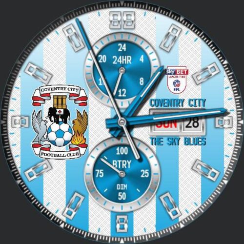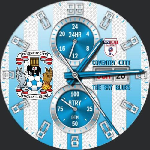 The QWW Sport Division is happy to present a new model: the Coventry City FC Modular Racer! Based on one of Sean Grondin's modular race watches, this one is customized for fans of the Sky Blues. Tap 6 o'clock to turn the dim off and on. Tap the center to experience 3 levels of zoom. Tap the top of the bezel to rotate it to the minute hand and back. Please to enjoy!