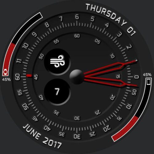 Splitting the informations into left/right or into up/down. Hour & minute flyback animation; animated subdails - always readable; custom weather and sensor icons; two modes: weather & sensor tap on any subdail to switch, each information will blend in/out after 5 seconds.