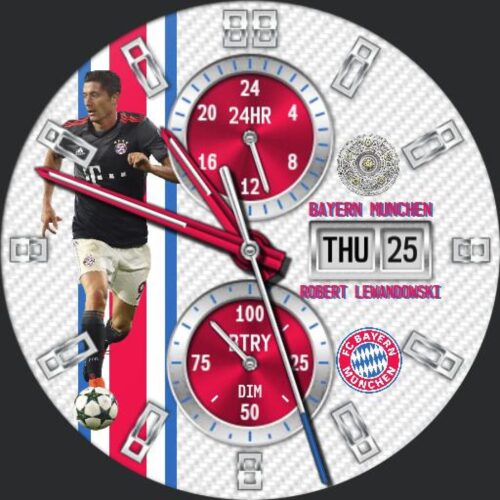 In cooperation with Adam Cohen, the QWW Sport Division is proud to announce the 2017 Futbol Champions Collection! Five leagues, five teams, five elite players, and five champions. The next team is FC Bayern Munchen, champions of Germany's Bundesliga! Based on one of Sean Grondin's beautiful modular race watches, this one is customized for fans of Robert Lewandowski. Tap 6 o'clock to turn the dim off and on. Tap the center to experience 3 levels of zoom. Tap the top of the bezel to rotate it to the minute hand and back. Tap the league logo to reveal the league trophy. Please to enjoy!