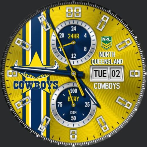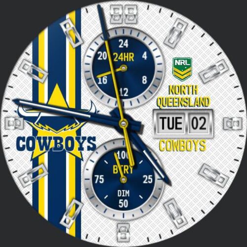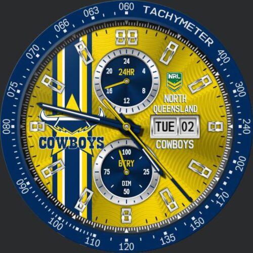 The QWW Sport Division is happy to present a new model: the North Queensland Cowboys Modular Racer! Based on one of Sean Grondin's modular race watches, this one is customized for fans of the National Rugby League. Tap 6 o'clock to turn the dim off and on. Tap the center to experience 3 levels of zoom. Tap the top of the bezel to rotate it to the minute hand and back. Tap 3 o'clock to change the background. Please to enjoy!
